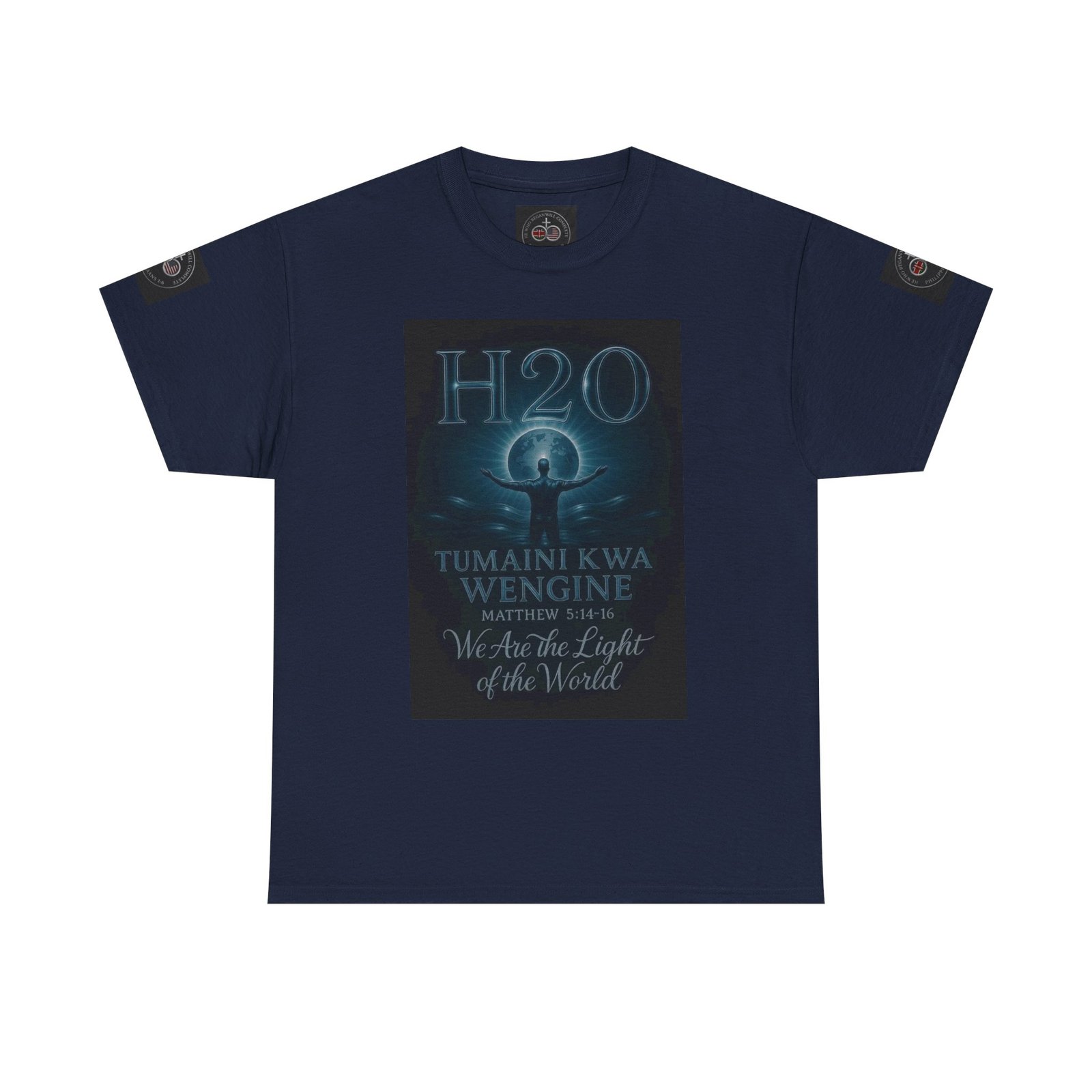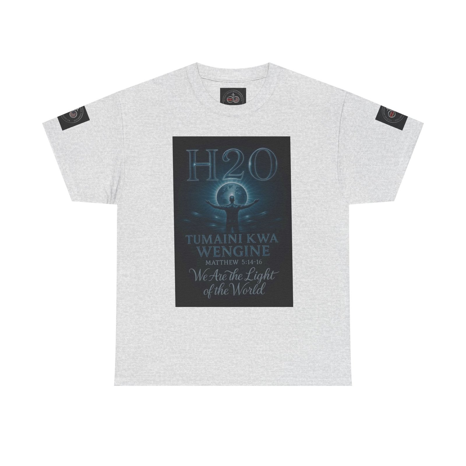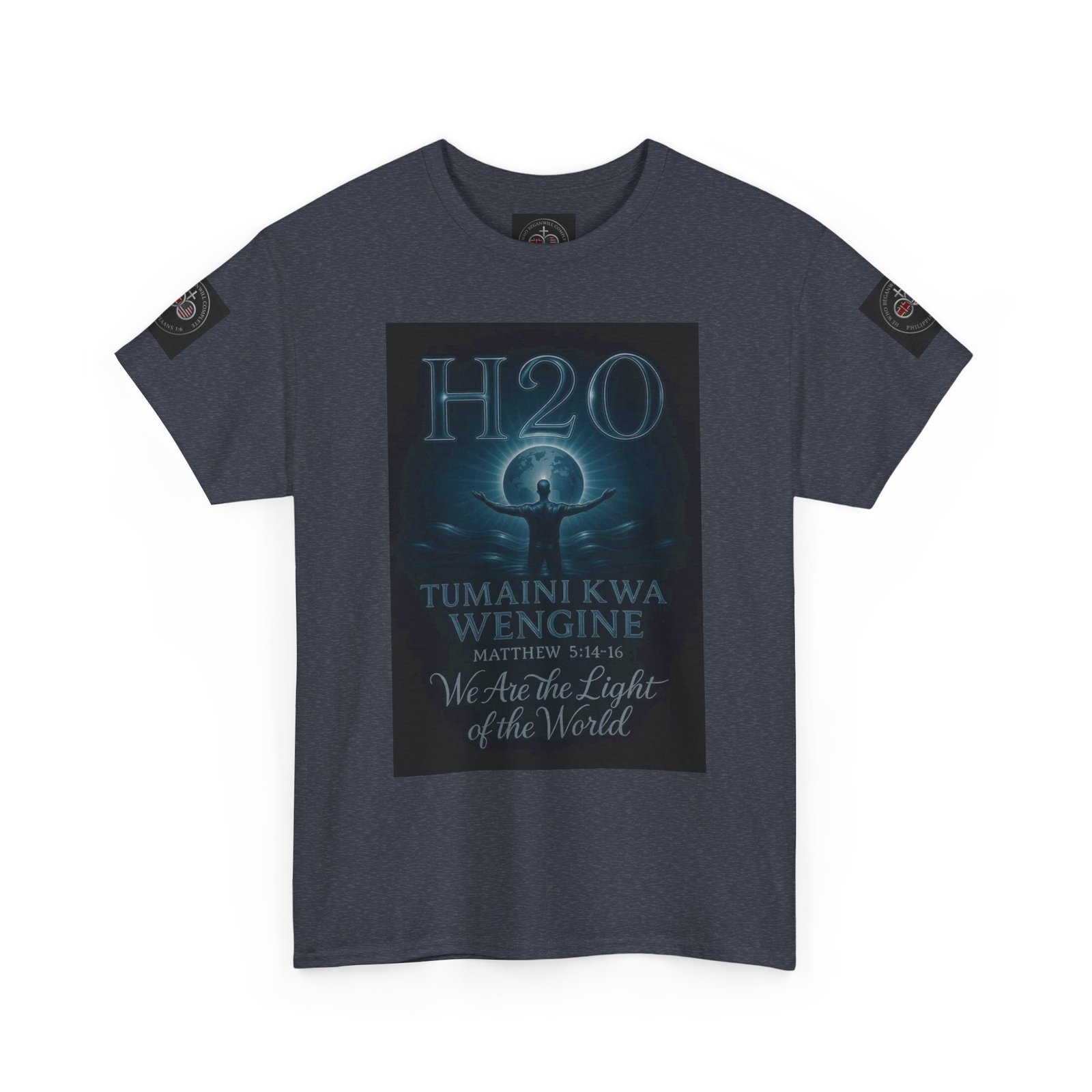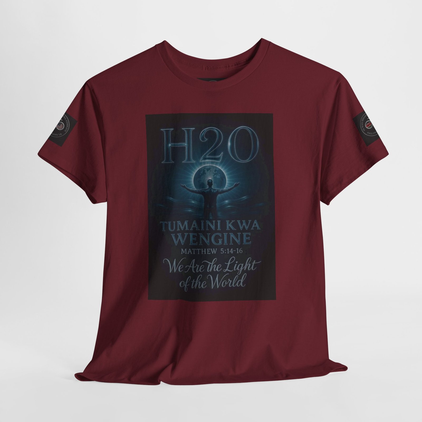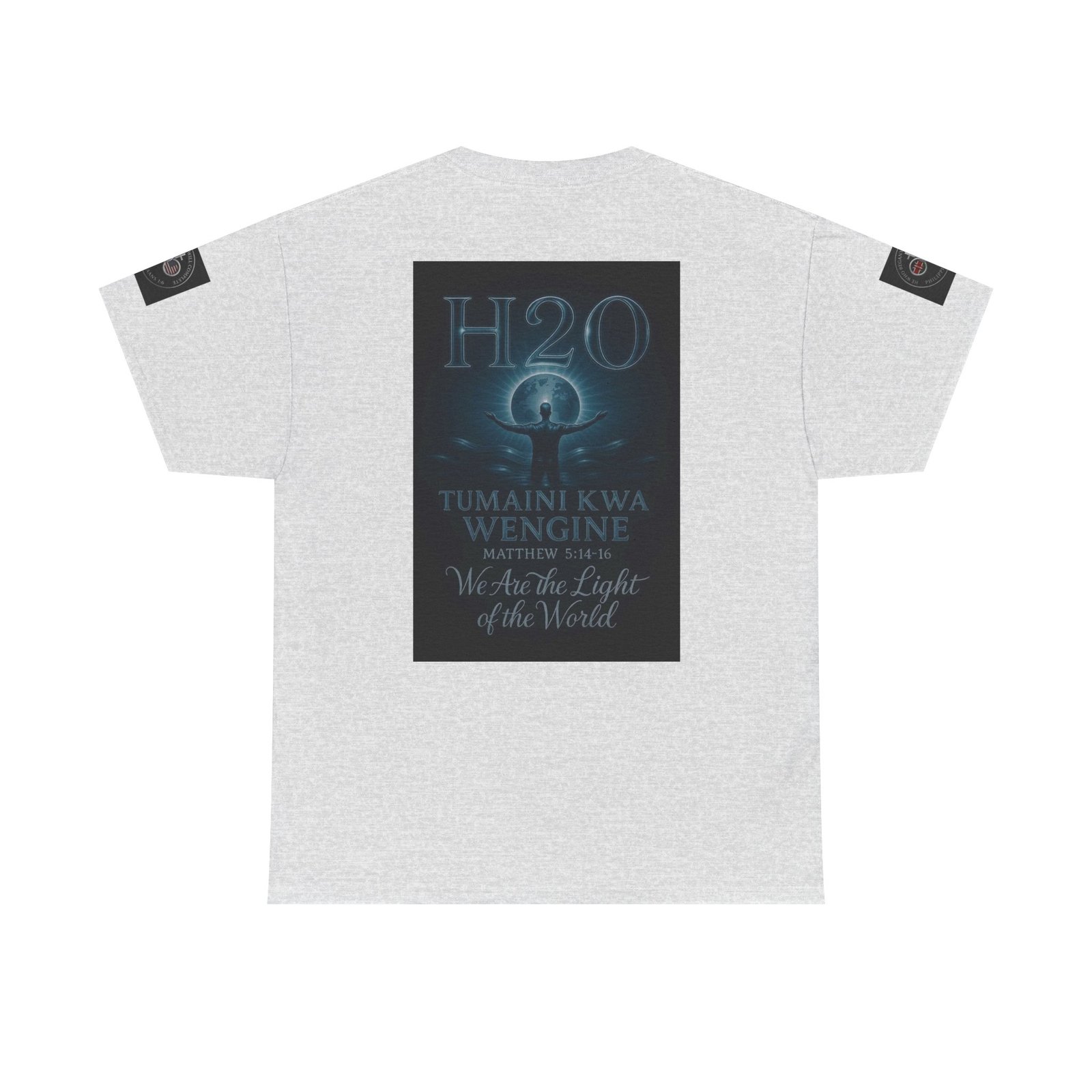This breathable, classic-fit tee carries a quiet, purposeful message: H2O and a call to be “the light of the world.” The soft, slightly textured cotton feels substantial without weighing you down. A deep, blue-toned poster-style print sits front and center, with the same artwork echoed on the back — a subtle echo for anyone who lives by values and wants their clothing to speak without shouting. Wear it layered under a jacket for evening outreach or on warm days when you want a comfortable shirt that reflects conviction and calm. The clean crewneck and tear-away label keep the focus on the message and the moment, not on fussing with your clothes.