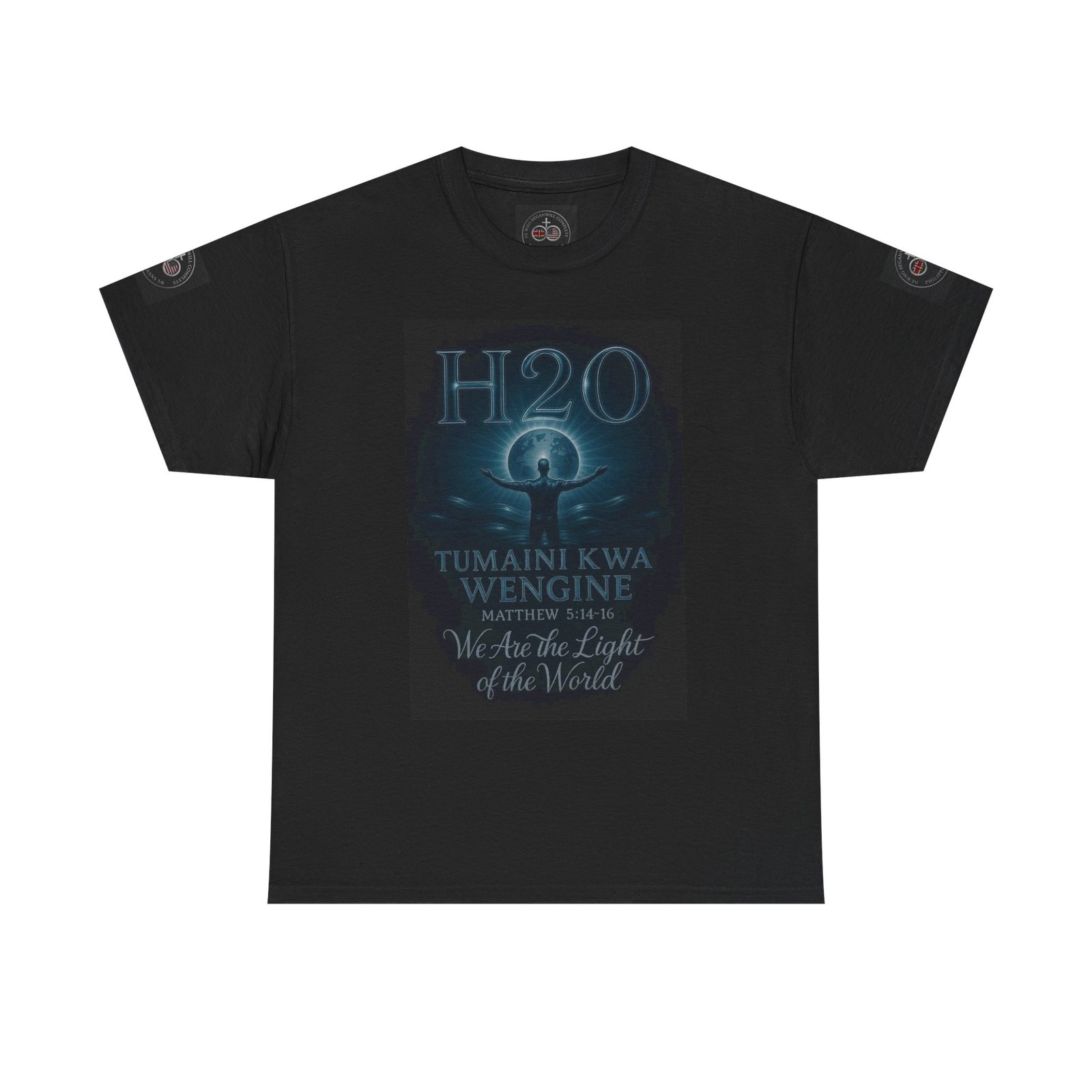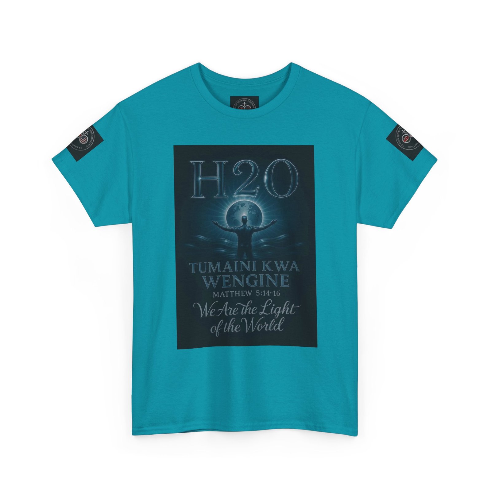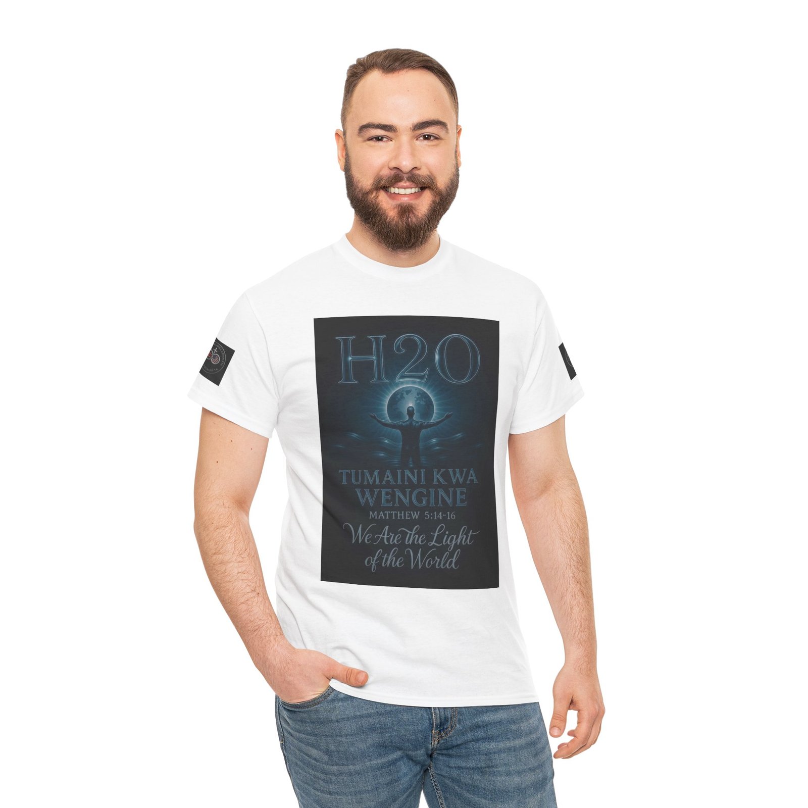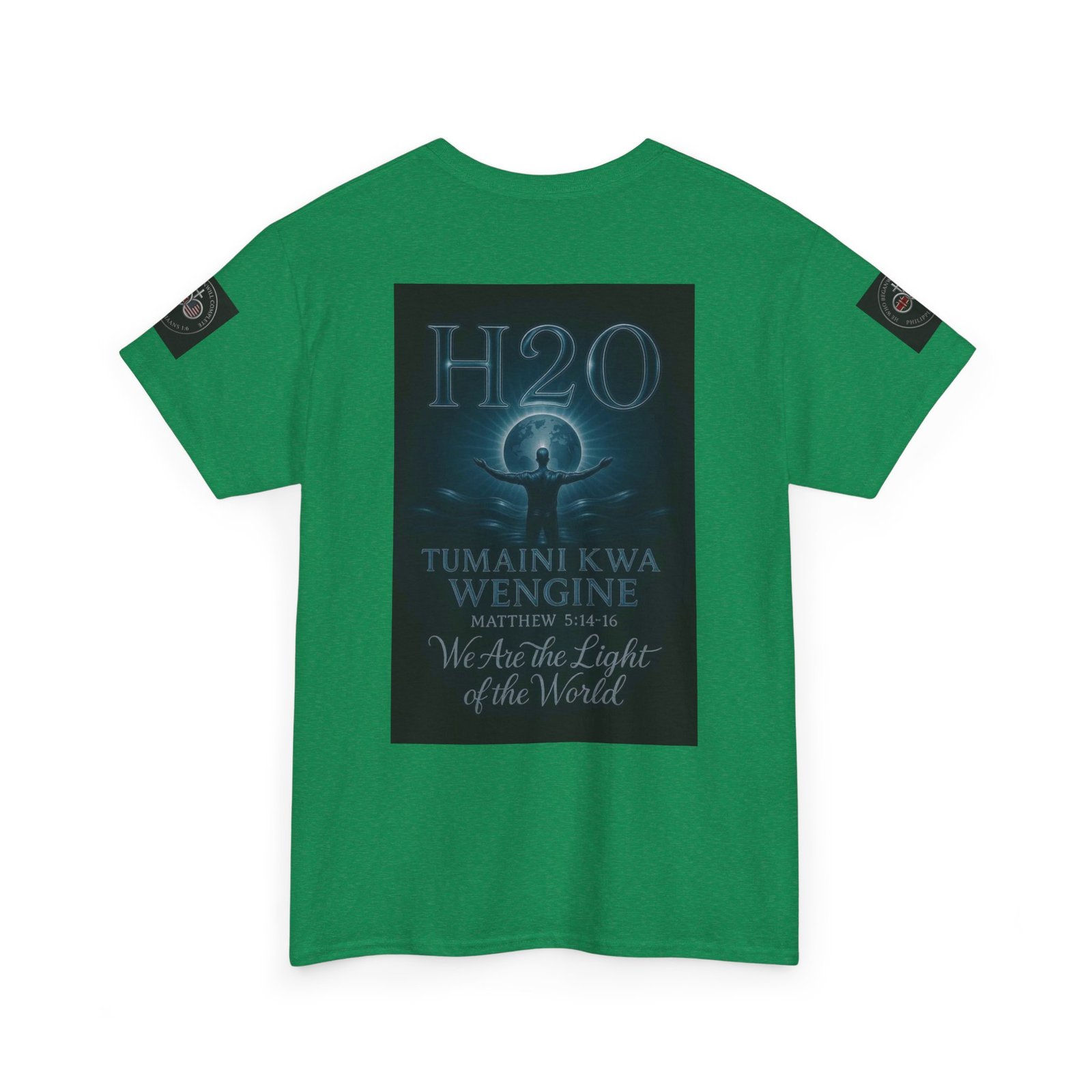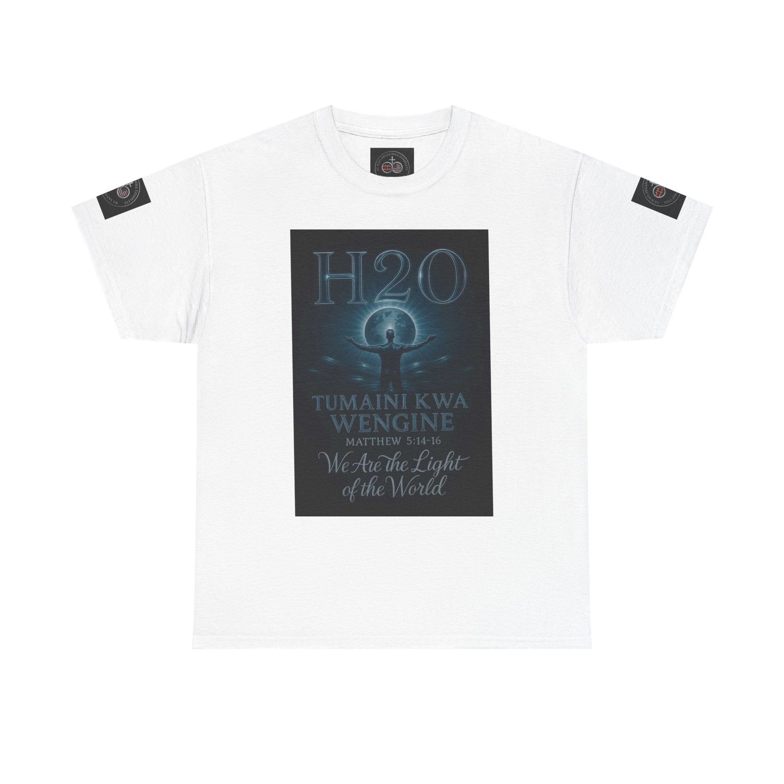 This breathable, classic-fit tee carries a quiet, purposeful message: H2O and a call to be “the light of the world.” The soft, slightly textured cotton feels substantial without weighing you down. A deep, blue-toned poster-style print sits front and center, with the same artwork echoed on the back — a subtle echo for anyone who lives by values and wants their clothing to speak without shouting. Wear it layered under a jacket for evening outreach or on warm days when you want a comfortable shirt that reflects conviction and calm. The clean crewneck and tear-away label keep the focus on the message and the moment, not on fussing with your clothes.