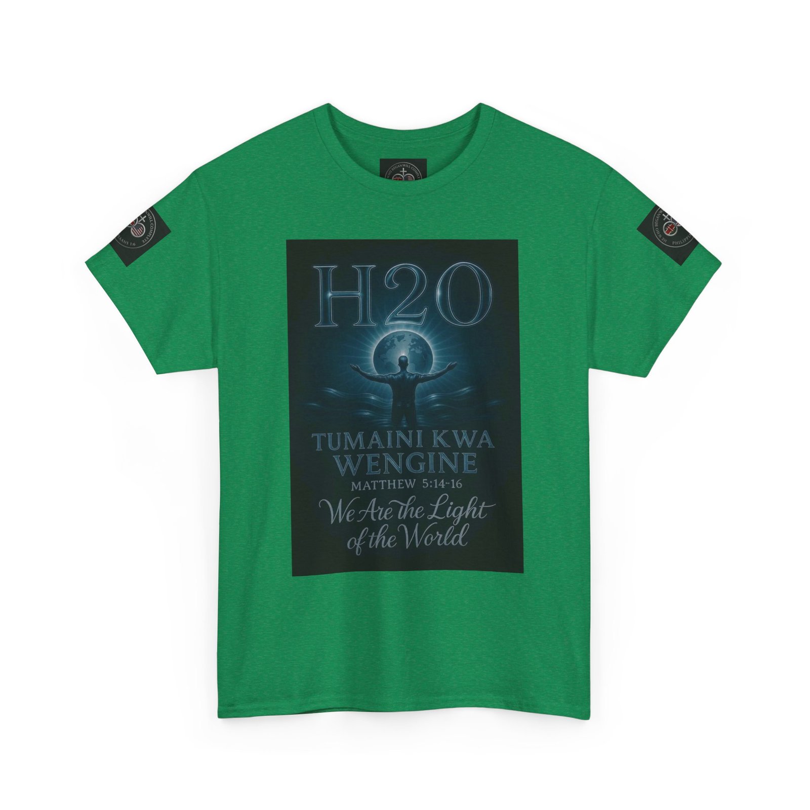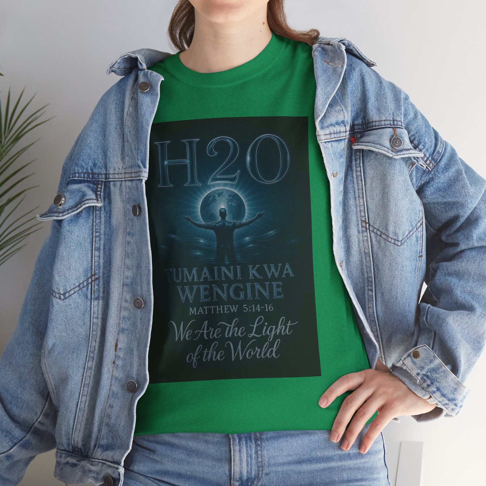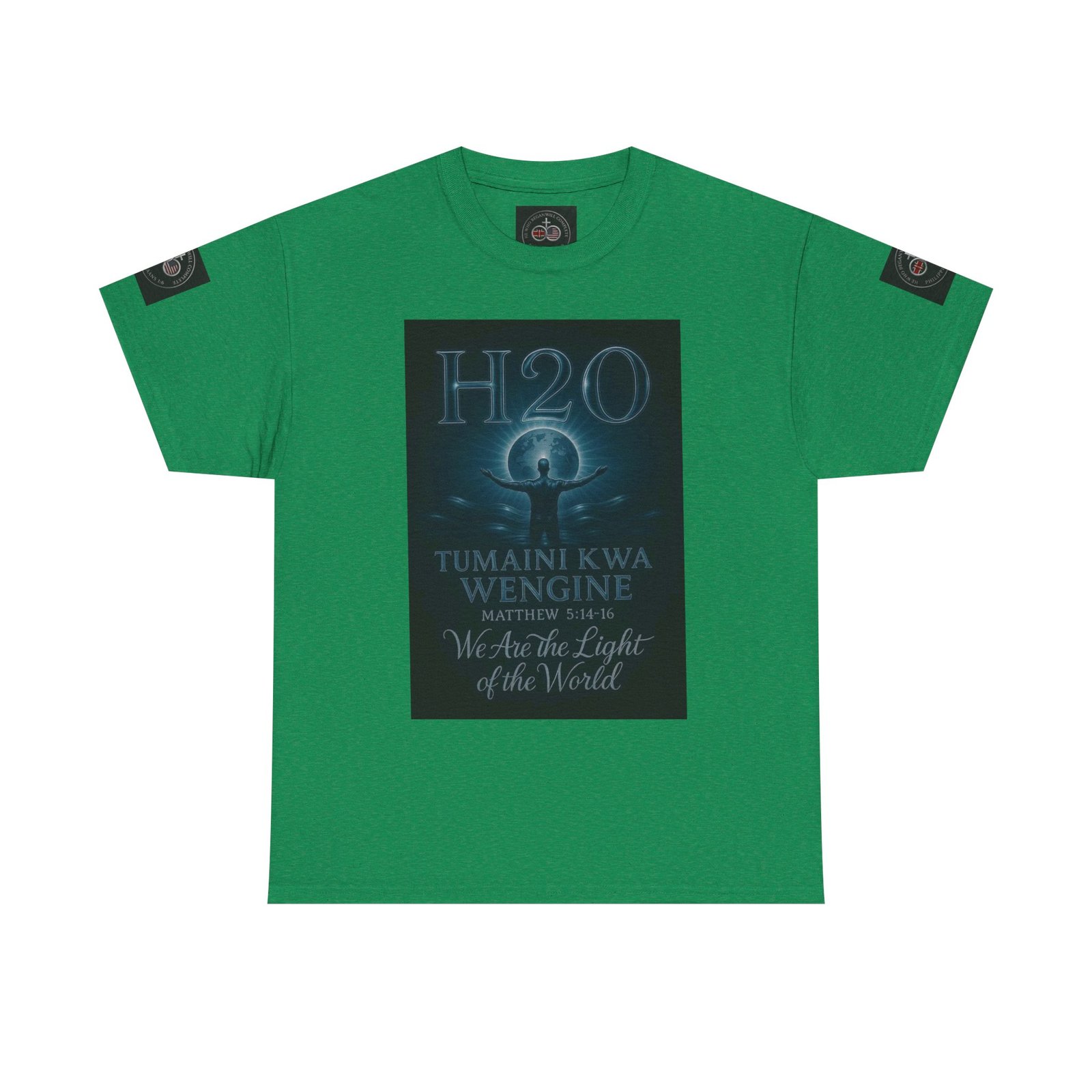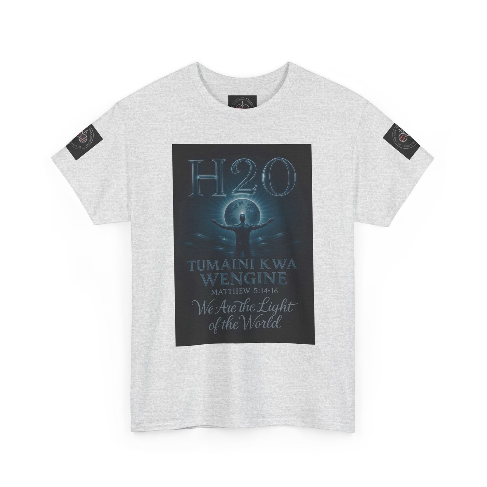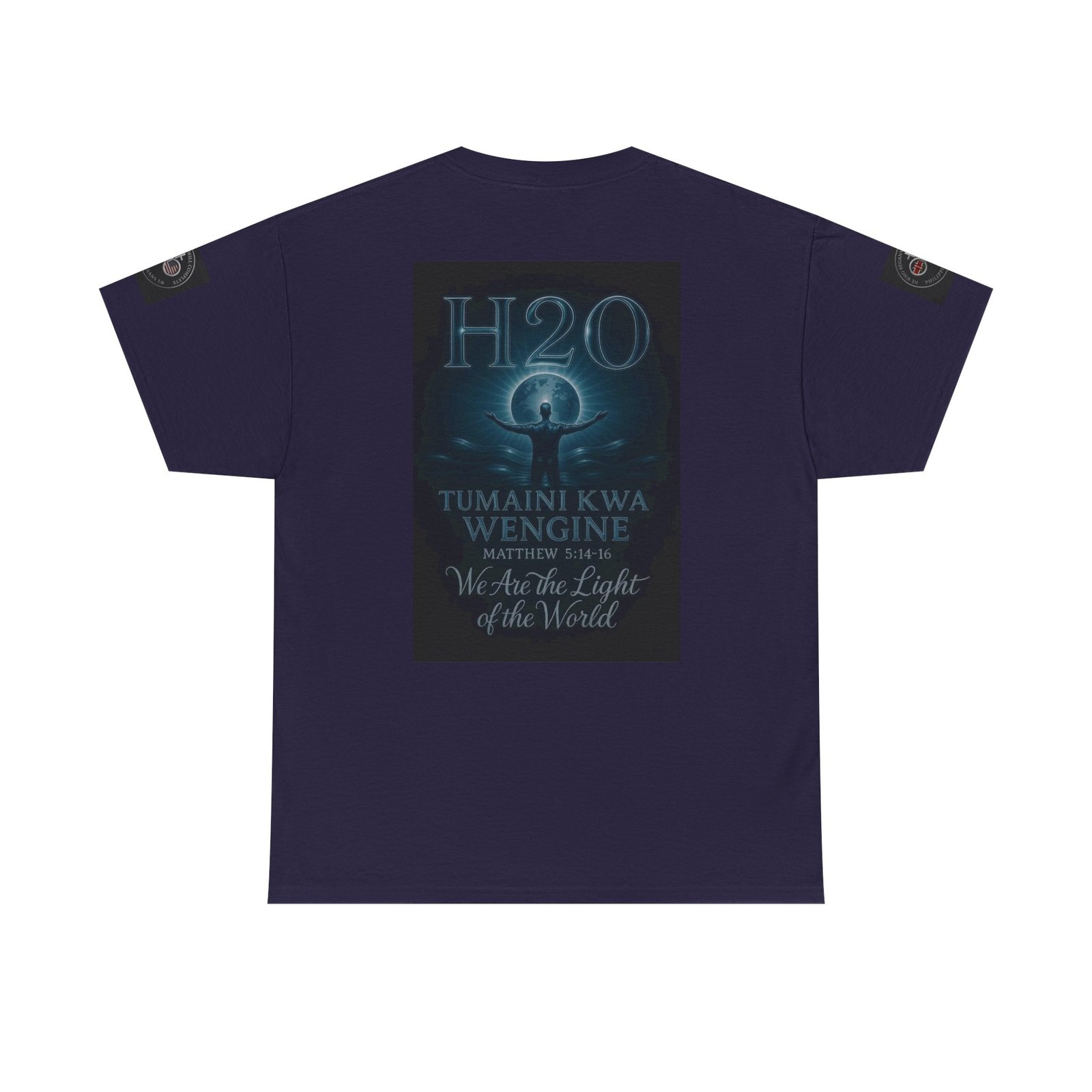 This breathable, classic-fit tee carries a quiet, purposeful message: H2O and a call to be “the light of the world.” The soft, slightly textured cotton feels substantial without weighing you down. A deep, blue-toned poster-style print sits front and center, with the same artwork echoed on the back — a subtle echo for anyone who lives by values and wants their clothing to speak without shouting. Wear it layered under a jacket for evening outreach or on warm days when you want a comfortable shirt that reflects conviction and calm. The clean crewneck and tear-away label keep the focus on the message and the moment, not on fussing with your clothes.
