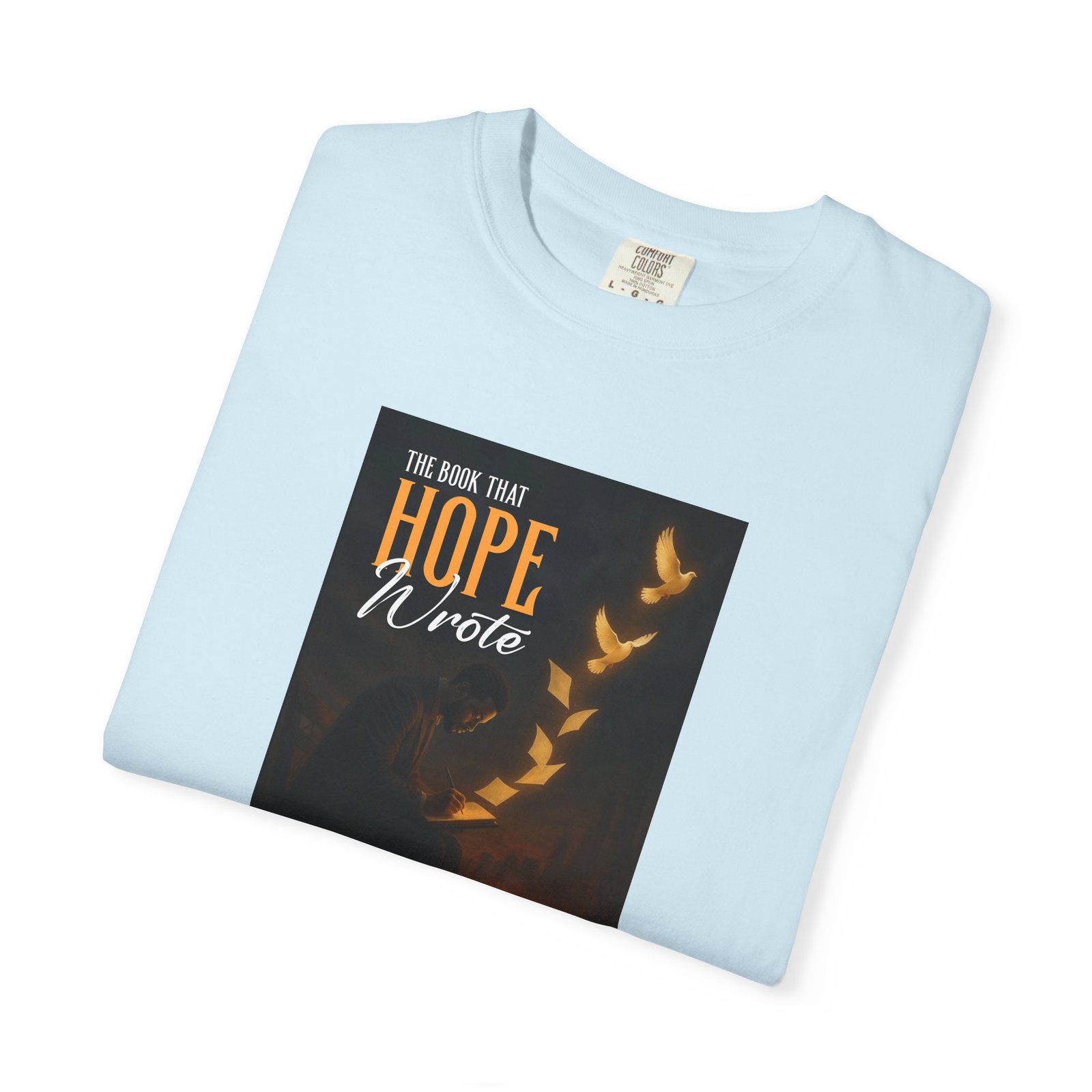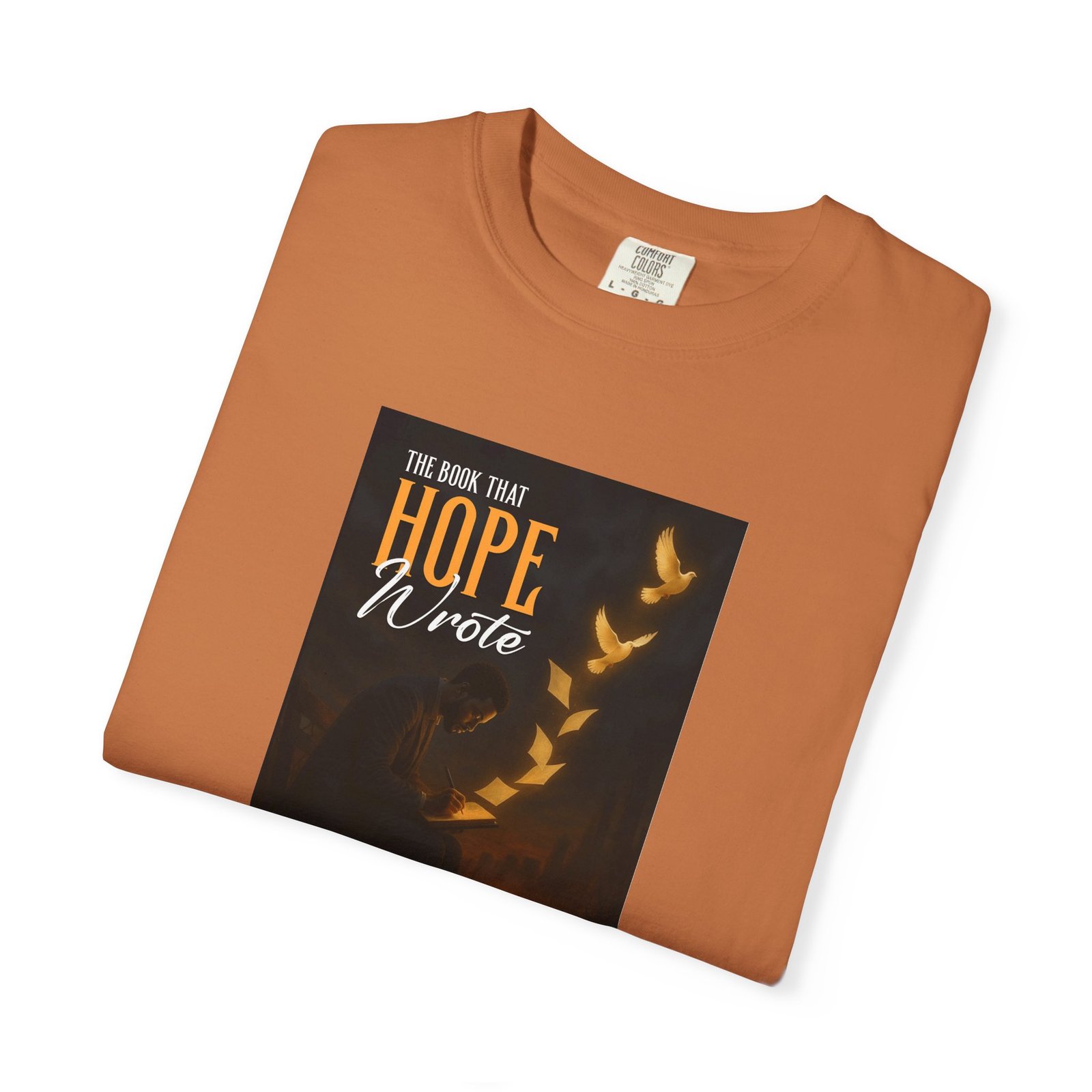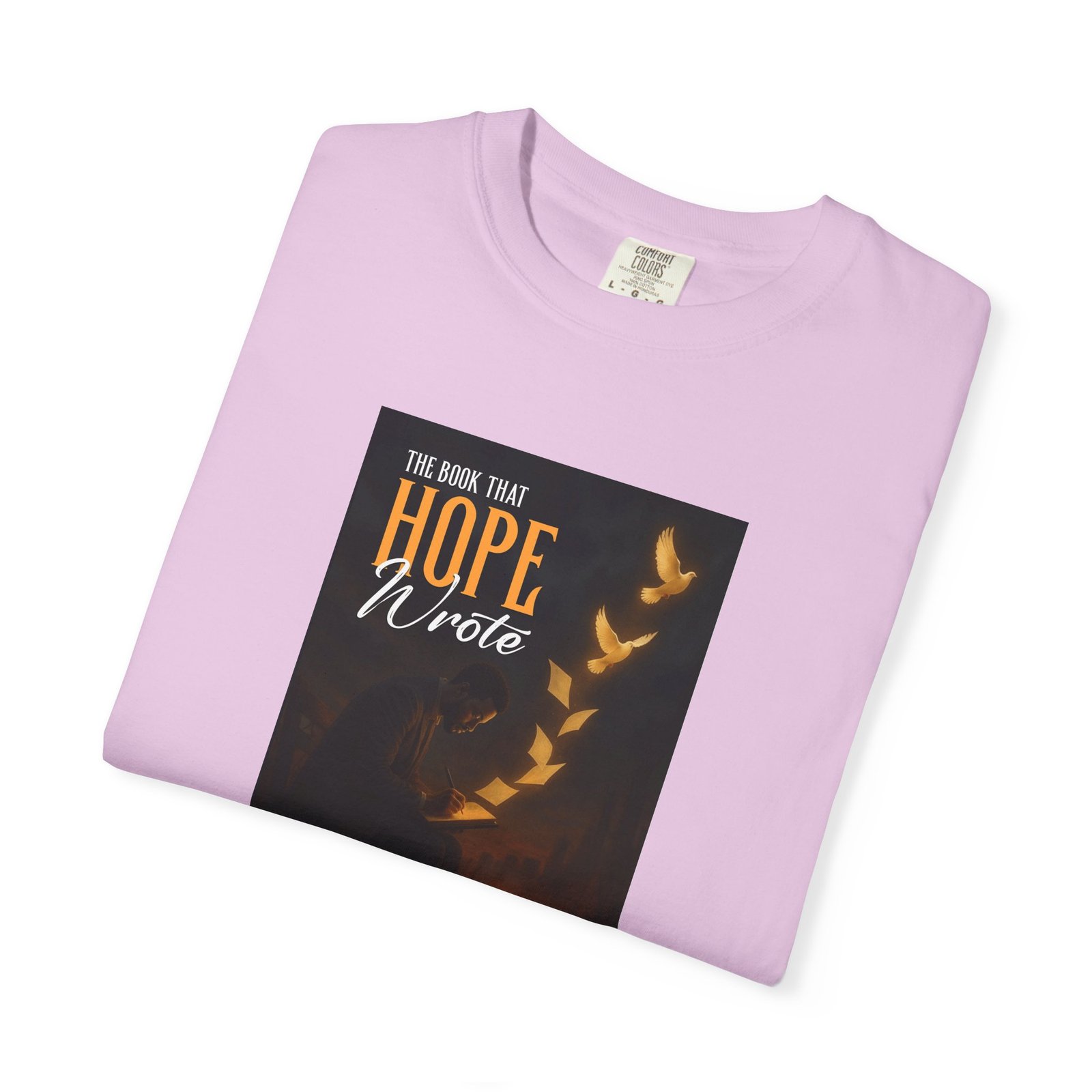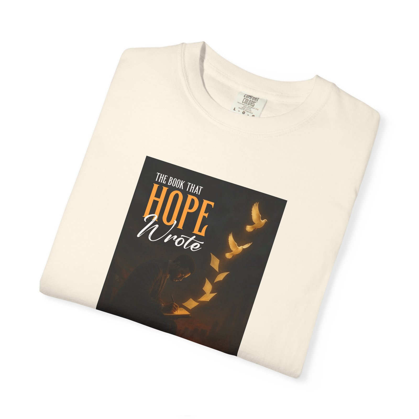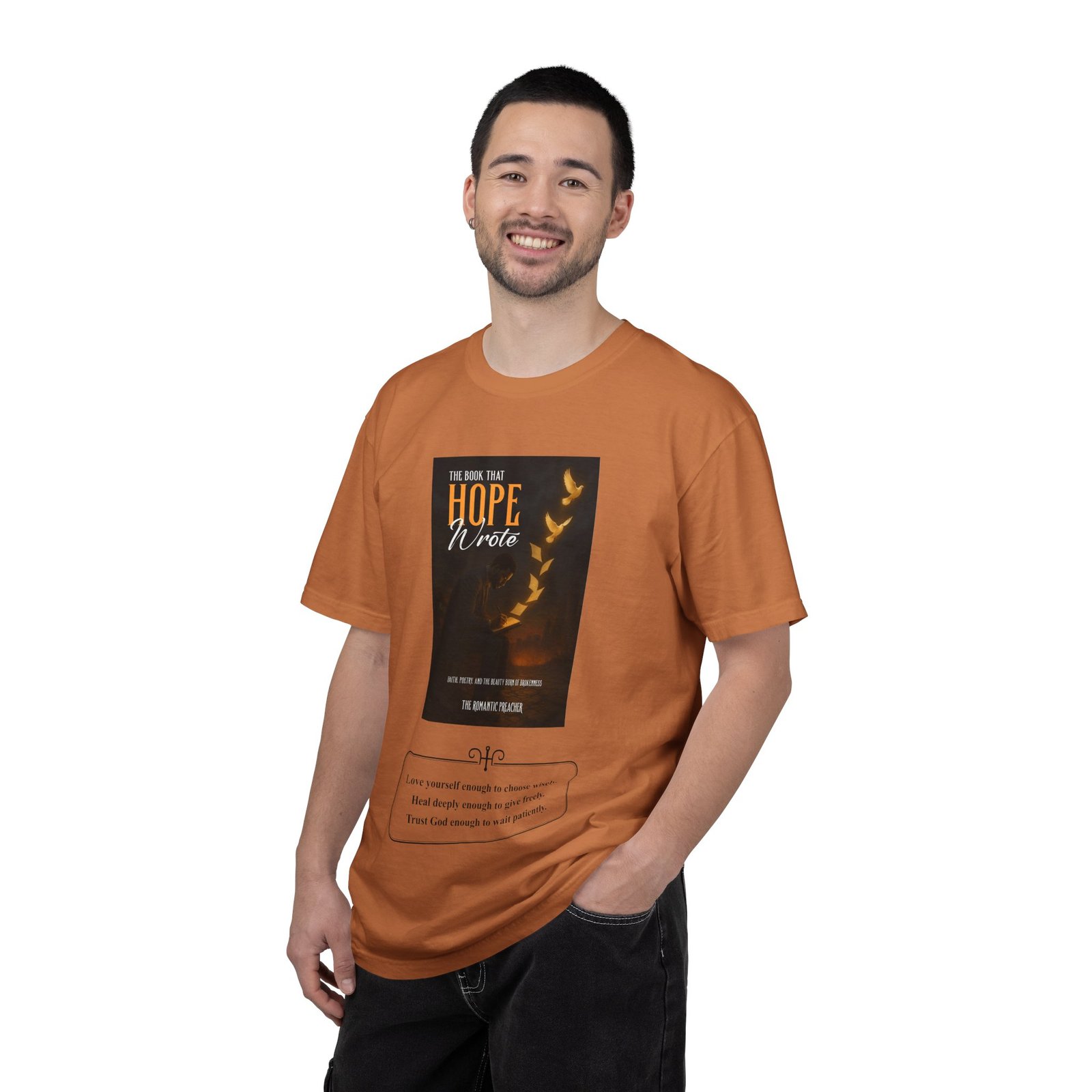 A soft, garment-dyed cotton tee that reads like a quiet prompt for anyone who keeps a notebook nearby. The front carries a small, framed line encouraging rest, courage, and patience; the back opens into a gentle list of writing reminders — short, right-sized nudges to write through joy, trauma, awe, and beauty. The relaxed fit and medium-weight 100% ring-spun cotton feel broken-in from the first wear. Subtle vintage dyeing and tubular construction give the tee a lived-in look without added side seams. Wear it to a coffee shop writing session, an evening of journaling, or when you need a calm, wearable invitation to put pen to paper.